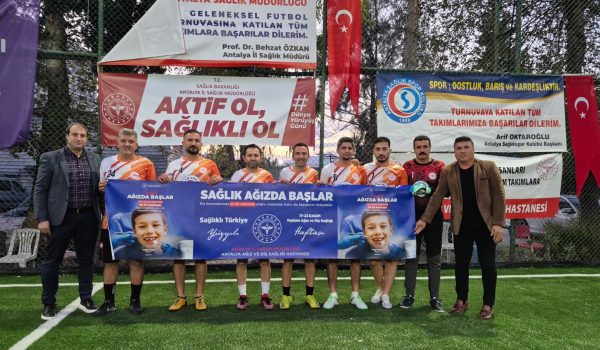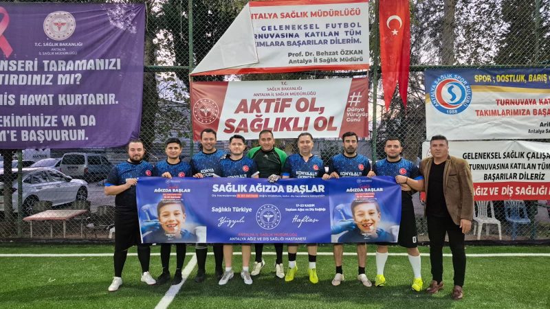 Antalya İl Sağlık Müdürlüğü 24.Geleneksel Futbol Ligi 17.Kasım.2025 tarihinde AŞH Eczane ile Kızılelma, OFM Hastanesi ile Antalya Ağız ve Diş Sağlığı Hastanesi, Serik Devlet Hastanesi ile Medstar Hastanesi, Kepez Devlet Hastanesi ile Gazipaşa Devlet Hastanesi ve Akdeniz F.C ile Korkuteli Devlet Hastanesi takımları Dokuma Kepez Spor Tesislerinde karşı karşıya geldi. 17-23 Kasım Toplum ve Ağız Diş Sağlığı Haftası kapsamında tüm takımlar müsabaka öncesi Sağlık Ağızda Başlar sloganı ile “Diş travmalarında ilk 60 dakikada doğru müdahale, kalıcı diş kayıplarını önleyebilir”. mesajını verdiler.